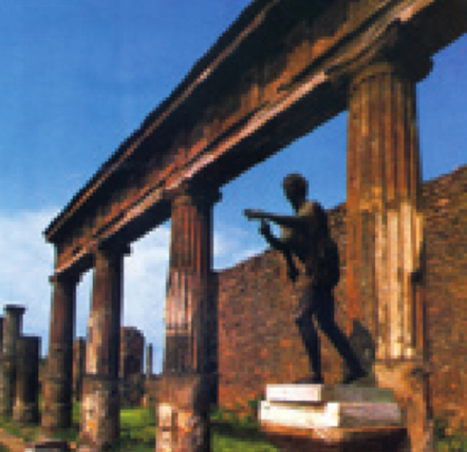 在古代羅馬,雕塑在一般城市中的布置,今天絕大部分已經(jīng)看不到了。然而,被維蘇威火山所掩埋的城市——龐貝和赫爾庫(kù)蘭姆——卻保存下1900多年前的古羅馬城市的真實(shí)面貌。從公元79年8月23日開始,維蘇威火山連續(xù)六次噴發(fā),無(wú)數(shù)火山礫和火山灰覆蓋了這兩座美麗的濱海城市,將它們的時(shí)間永遠(yuǎn)凝固在1900多年前。