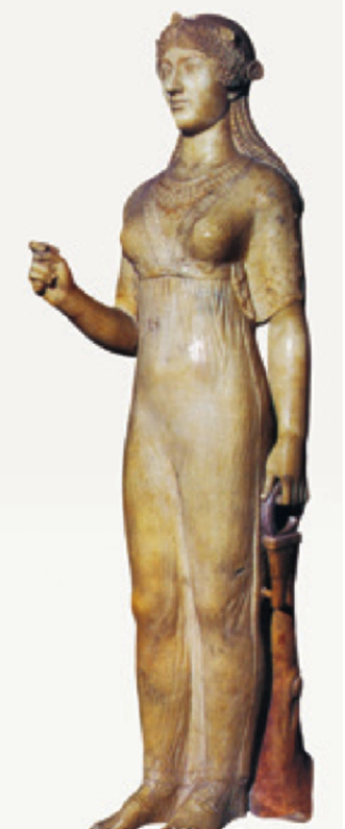 大理石 2世紀(jì) 意大利龐貝  它出土于伊西斯女神廟的柱廊中,是火山爆發(fā)后唯一完整無(wú)損的女神雕像。她已變成希臘風(fēng)格的女神了。