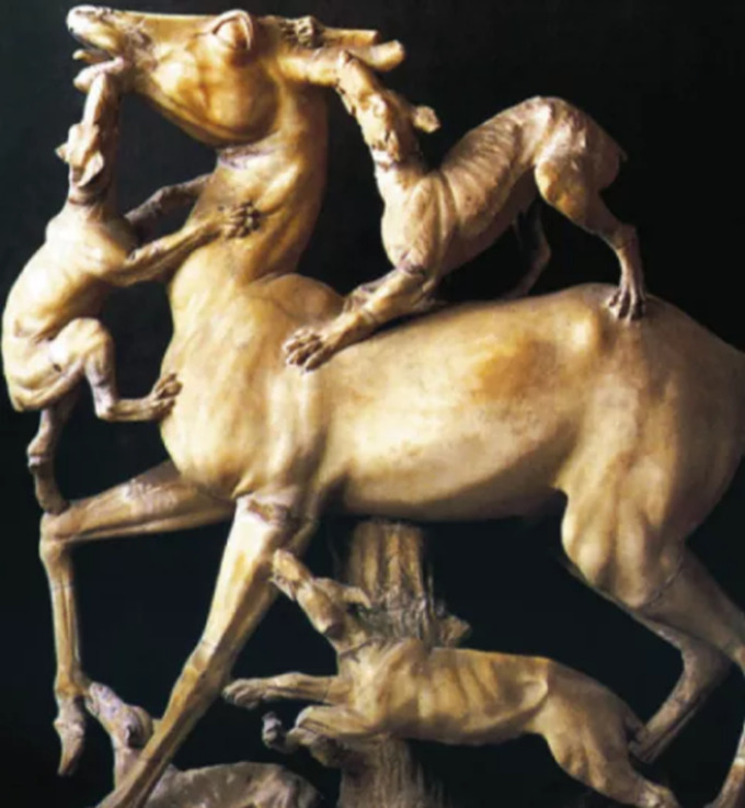 2世紀(jì) 意大利赫爾庫(kù)蘭姆    在牡鹿邸出土的兩座牡鹿雕像之一??胺Q羅馬雕塑中的上乘之作。